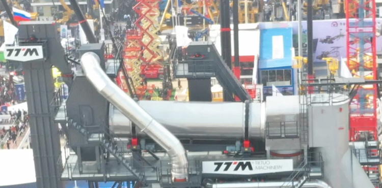展品設(shè)備之逆流式TSEC5030環(huán)保型瀝青廠拌熱再生一體設(shè)備。展會開始,這臺“龐然大物”就引起大家的矚目,該新品設(shè)備不僅是本屆室外展區(qū)最大型號的瀝青廠拌熱再生一體設(shè)備,目前是也是國內(nèi)之最。