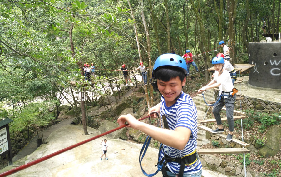 這次團隊活動的地點在風景優(yōu)美的莆田九龍谷。在山水相依,青木環(huán)繞的美景下,技術(shù)研發(fā)中心的各位精英忘掉了炎熱,體驗了多種精心安排的挑戰(zhàn)項目,有叢林穿越、高空滑索和賽竹排運動等等,挑戰(zhàn)力十足。